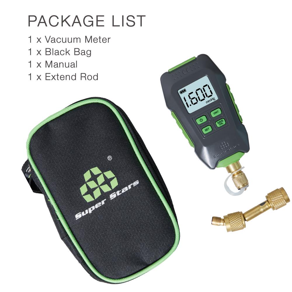 Packing: 1x vacuum gauge, 1x storage box, 1x extension interface